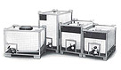 Zur Ausstattung gehört eine Gitterbox auf Palette und ein Innenbehälter aus Polyethylen, der im Blasverfahren oder als Sonderfertigung im Rotationssinterverfahren hergestellt wird.